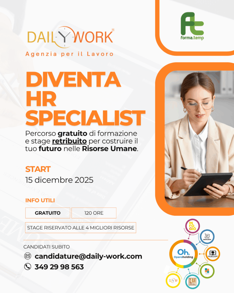 Per questo Daily Work – Agenzia per il Lavoro, in collaborazione con Forma.Temp, ha ideato un percorso formativo gratuito pensato per offrire ai partecipanti una preparazione completa e immediatamente spendibile nel mondo HR.
